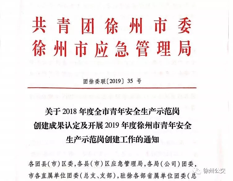 公司81路線榮獲徐州市 “青年安全生產(chǎn)示范崗”榮譽(yù)稱號