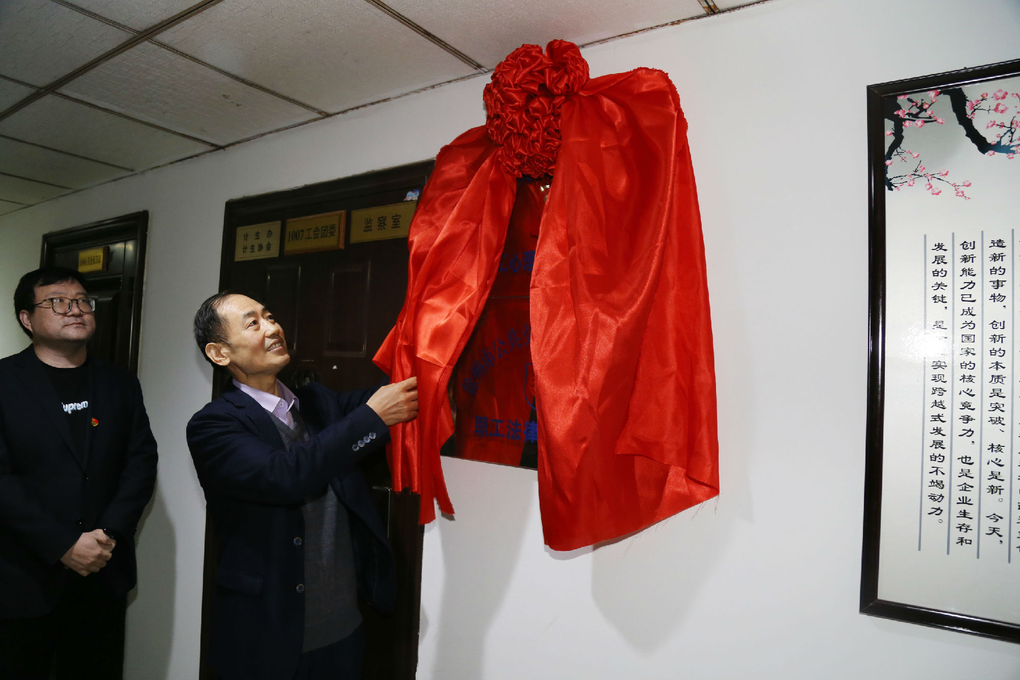 為進一步落實公交家文化建設(shè)工程,幫助職工維護自身合法權(quán)益,關(guān)注職工心理健康,推動創(chuàng)建幸福和諧企業(yè),31日上午,徐州公交集團職工法律援助中心、職工心理健康疏導(dǎo)中心在公交大廈10樓掛牌成立。集團黨委書記、董事長高守江,紀委書記、工會主席袁夫松現(xiàn)場揭牌。