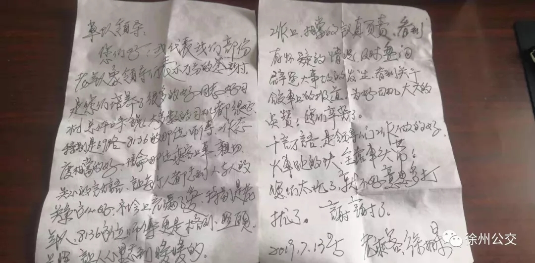 7月15日上午,一位老年乘客來到新巴士公司,送來一封表揚(yáng)信,對(duì)69路駕駛員的服務(wù)稱贊不已,“雖然今天天氣熱,但是我還是要親自送表揚(yáng)信,這么優(yōu)秀的同志,應(yīng)該得到表揚(yáng)。”老人這樣說道。