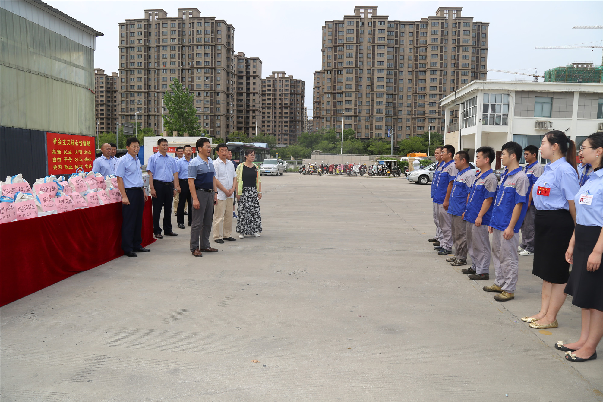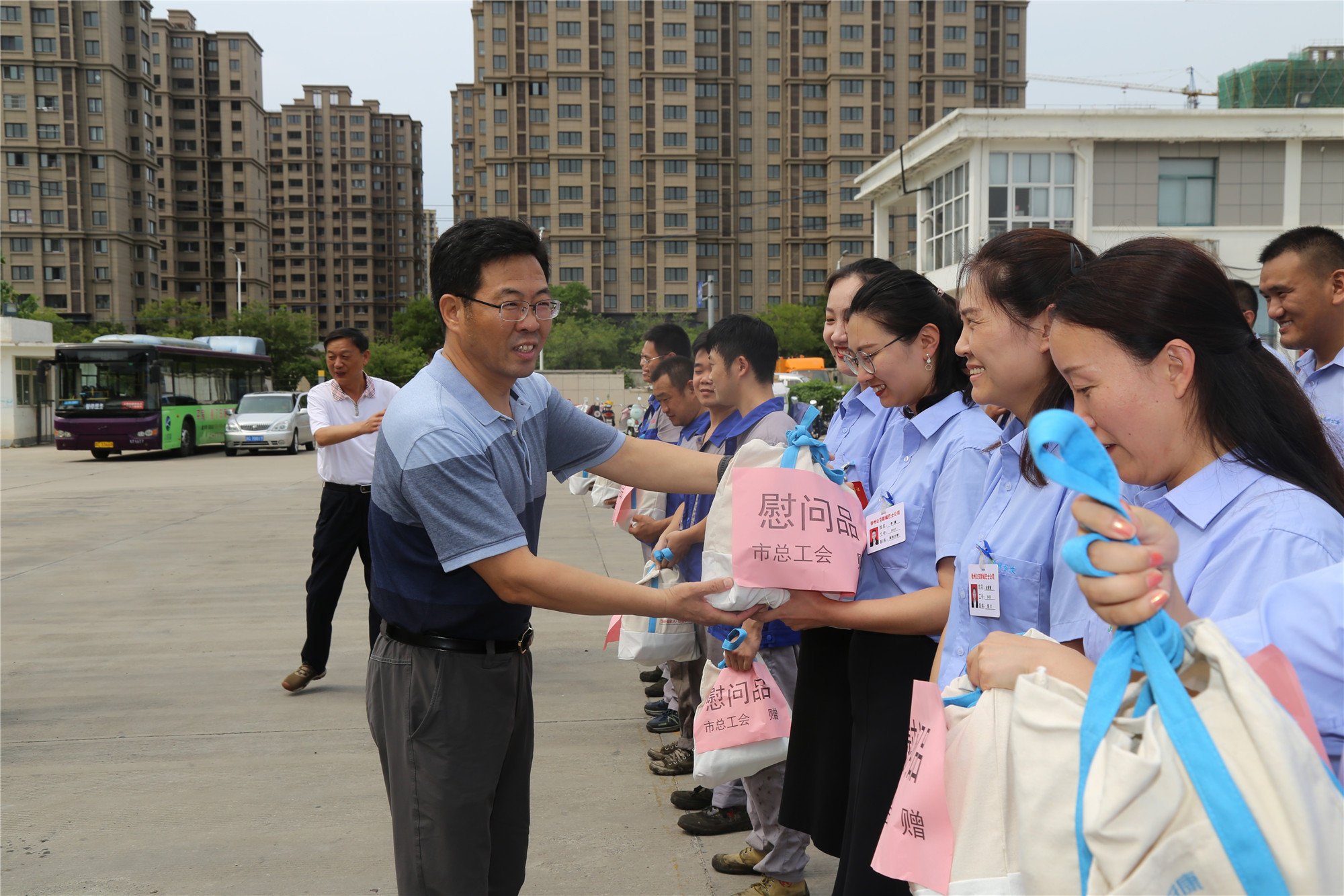 正值盛夏,近期市持續(xù)高溫、濕熱多雨,持續(xù)攀升的炎熱天氣“烤驗(yàn)”著堅(jiān)守崗位公交職工。三伏天里,工會(huì)娘家人總是心系一線(xiàn)職工安康,8月1日下午,徐州市總工會(huì)黨組成員、副主席王建民,副調(diào)研員馮相合等一行,在市交通運(yùn)輸局工會(huì)副主席巨玲和徐州公交公司總經(jīng)理馮陸陸,公司黨委副書(shū)記、紀(jì)委書(shū)記、工會(huì)主席竇同銀的陪同下,頂烈日冒酷暑來(lái)郭莊路公交停車(chē)場(chǎng),看望慰問(wèn)奮戰(zhàn)在高溫一線(xiàn)的公交職工,送來(lái)了高溫慰問(wèn)品,更送來(lái)了殷殷關(guān)愛(ài)和叮嚀,大家感受到了夏日里的絲絲“清涼”。