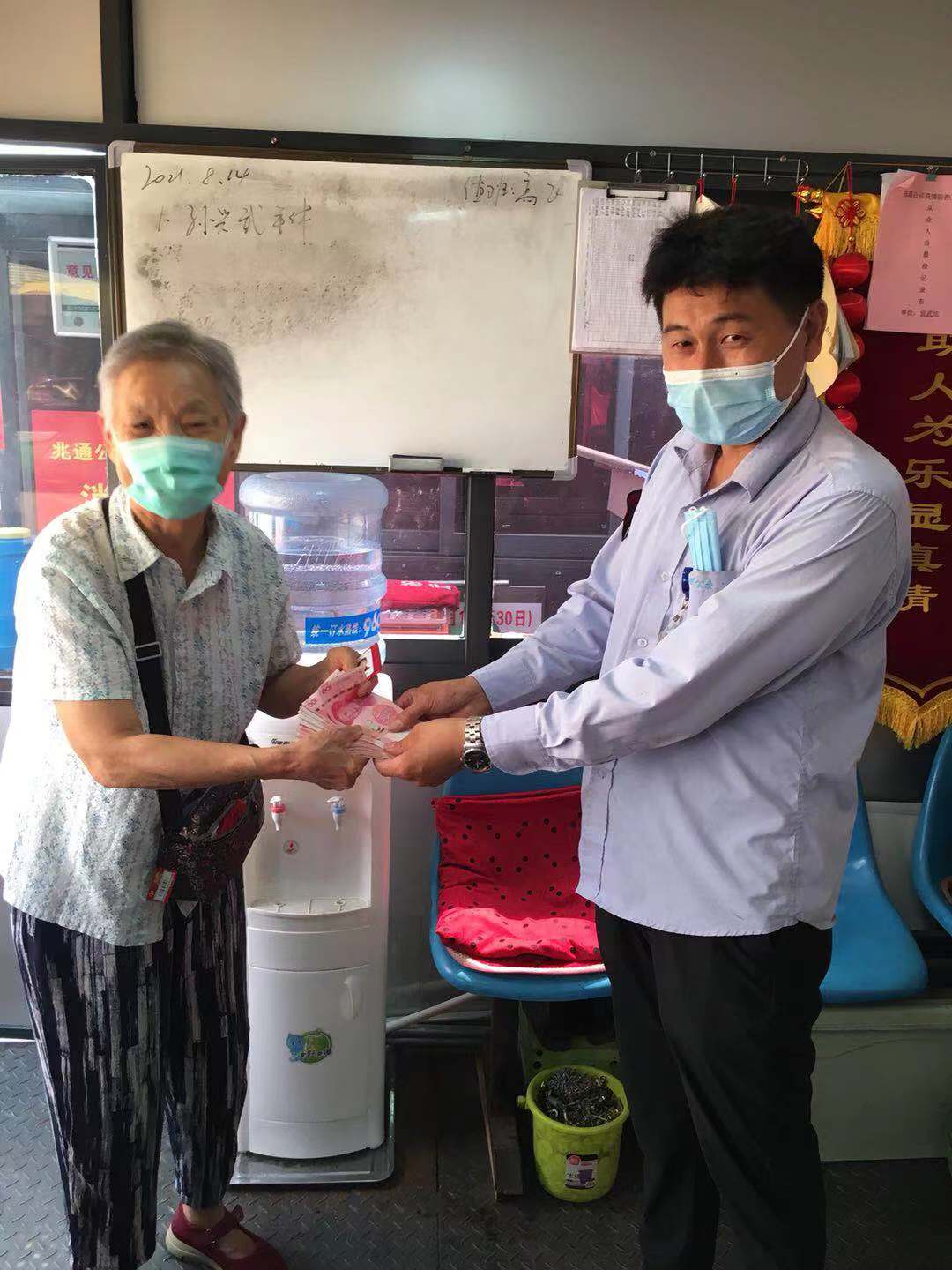 814日上午,段世望像往常一樣駕駛618294號車從徐村開往宣武市場,在宣武市場車站打掃衛(wèi)生時,在座位下發(fā)現(xiàn)一個錢包,段師傅立即將包交到車站值班室,包內(nèi)裝有身份證及四千余元現(xiàn)金。此時,段師傅正準備返回車廂做出車前準備,迎面碰到了心急如焚尋找失物的老人。
