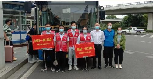 同時(shí),為了服務(wù)好學(xué)生返校,新城公司組織雷馳平安志愿者服務(wù)隊(duì)在徐州東站出口處集結(jié),隊(duì)員們高舉引導(dǎo)牌,迎接工程學(xué)院學(xué)子的到來?,F(xiàn)場幫助學(xué)生們提箱子拿行李,測體溫,查驗(yàn)“兩碼”,引導(dǎo)學(xué)生有序上車。并在車內(nèi)備有應(yīng)急藥箱、消毒濕巾、口罩、飲用水等物資,受到學(xué)生們的一致好評!