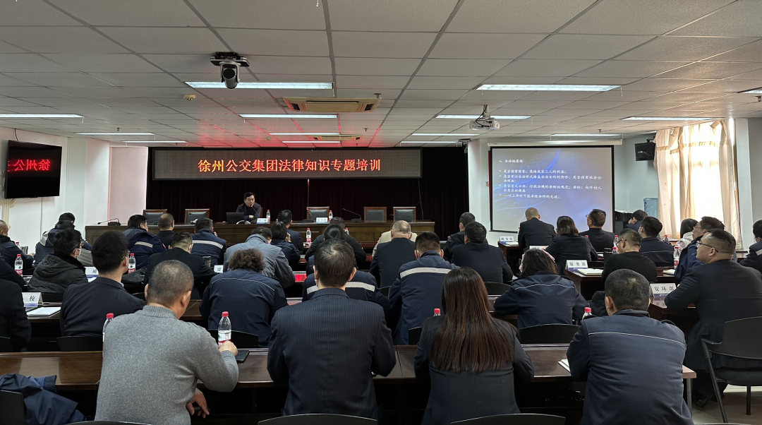 為進一步強化風險防控意識,增強集團管理干部及職工在生產經營中的法律風險識別和防控能力,有效降低經營管理中的法律風險,切實保障集團和自身的合法權益,11月24日下午,徐州公交集團舉辦了法律知識專題培訓會。集團高層領導、機關部室負責人、基層單位班子成員等共計40余人參加培訓。會議由集團黨委副書記、總經理袁夫松主持,江蘇同祺律師事務所律師王勇授課。