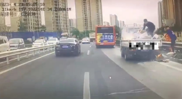 4月21日中午,608路4名駕駛員石守軍、孫晉旭、郝科軍、郝允明駕駛著他們各自的車輛前往火花加氣站進(jìn)行加注燃料,就在返回的途中,忽然看到前方路邊白煙滾滾,當(dāng)距離再靠近一點(diǎn)時才發(fā)現(xiàn)竟然是一輛小型貨車車廂著火產(chǎn)生的陣陣煙霧,且已經(jīng)有幾個箱子開始接連燃燒,小貨車駕駛員手里只有一瓶礦泉水,面對火勢即將控制不住,這僅有的一瓶水無疑是杯水車薪,無奈之下,貨車司機(jī)只能慢慢地將著火的紙箱搬下車廂。