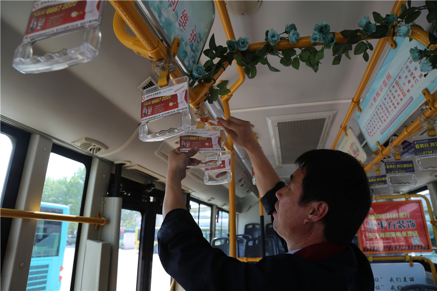 4月19日下午3點(diǎn)多,“嚓、嚓、嚓,嚓、嚓、嚓!”筆者在韓山停車場(chǎng)偶然間發(fā)現(xiàn)一輛49路車上一個(gè)忙碌的身影,正在拿著黃色牙刷在刷扶手。走上車,哦,原來是市勞模、49路四星級(jí)駕駛員王博正在利用休停時(shí)間用牙膏刷洗拉手,別說,這個(gè)小竅門還真不錯(cuò)!經(jīng)過王師傅的辛勤刷洗,原本發(fā)黑的黃色拉手布煥然一新!配詩(shī)一首: