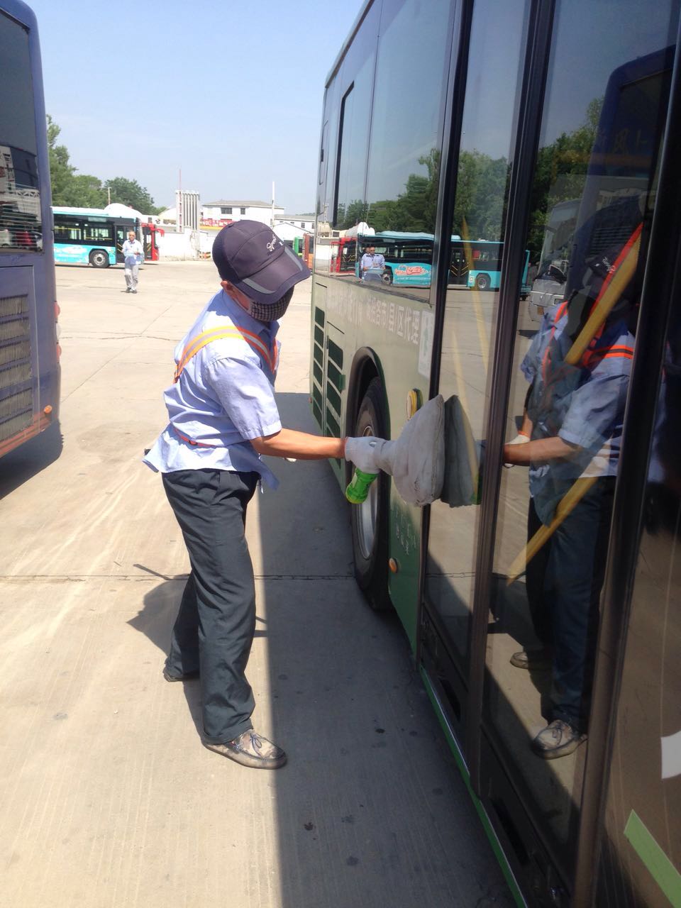 車輛保潔人員由于崗位特殊,每天穿梭在車來車往的各個停車場,他們利用公交車休停間隙,需要迅速對車輛進行保潔。而原保潔服上的反光條面積小,效果不明顯,不容易引起駕駛員的注意。為保障保潔人員的作業(yè)安全,5月8日,公司工會為全體車輛保潔人員發(fā)放了安全防護反光馬甲。這種馬甲是用高能見度反光材料制成,樣式簡約、穿戴方便、超強反光,它使保潔人員無論是白天或是特殊天氣情況下能夠順利作業(yè),起到了很好的警示作用。